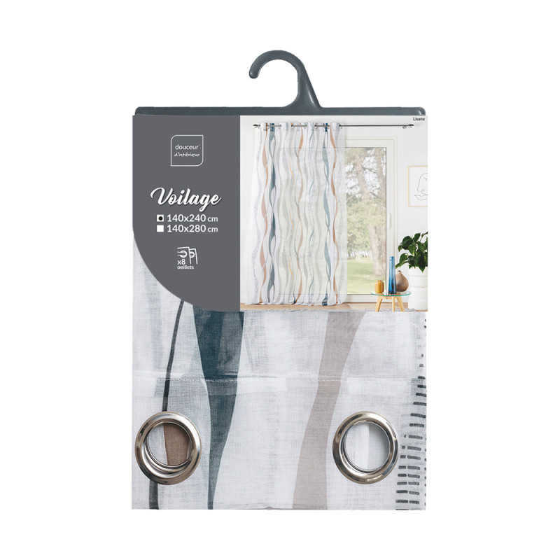 Rideau voilage imprimé vaguelettes multicolore 140x240 cm