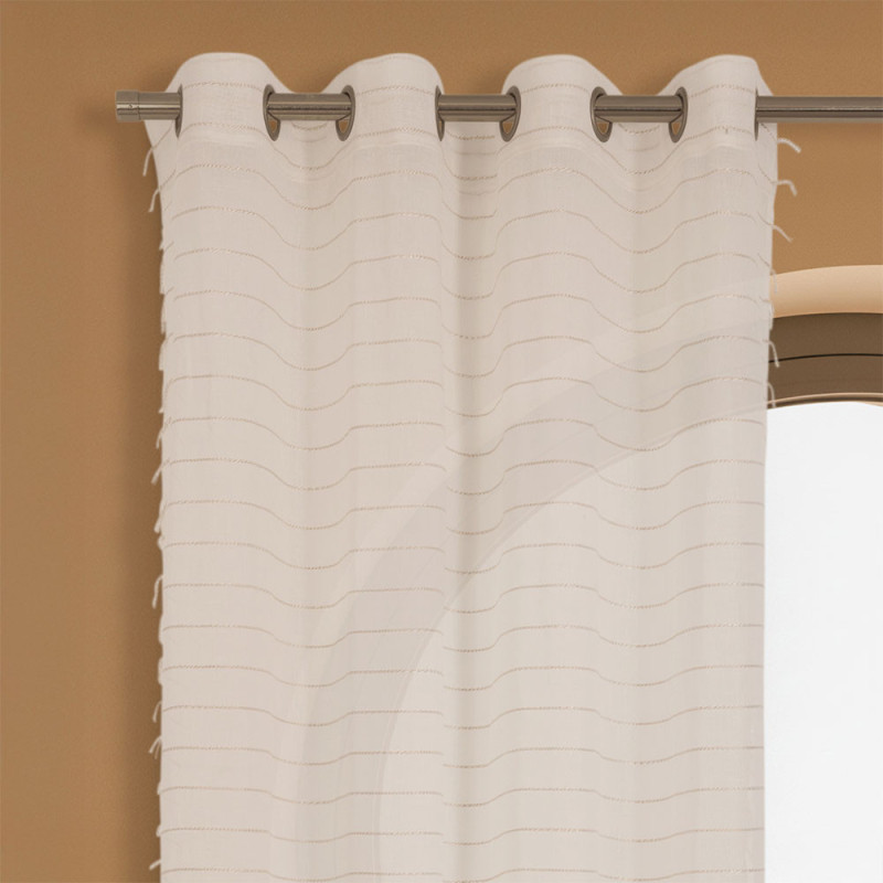 Rideau voilage étamine Tressi à rayure fil coupé effet frange ivoire 140×240cm