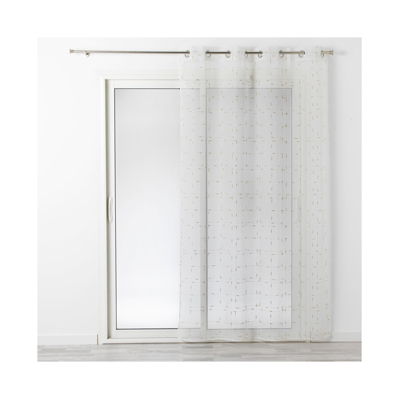Ce rideau en voile blanc avec son tissage or est parfait pour tamiser une pièce de la lumière extérieure. Sa matière et sa couleur se marieront parfaitement avec la plupart des décorations.