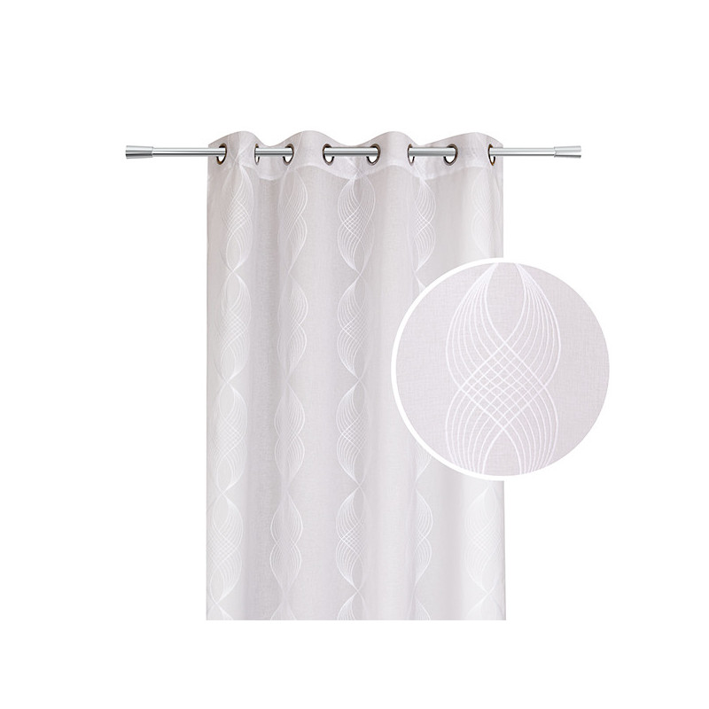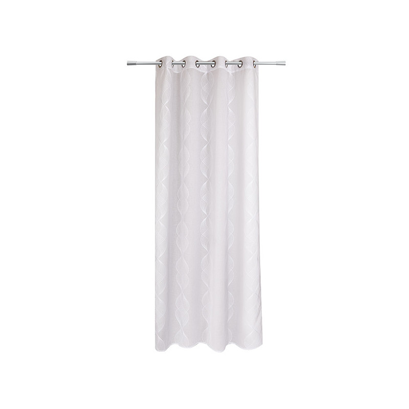 Rideau à oeillets en voile à broderie torsade couleur blanc en dimensions 140 x 240 cm. Idéal pour protégrer du vis-à-vis et ajouter une touche d'élégance à votre intérieur.