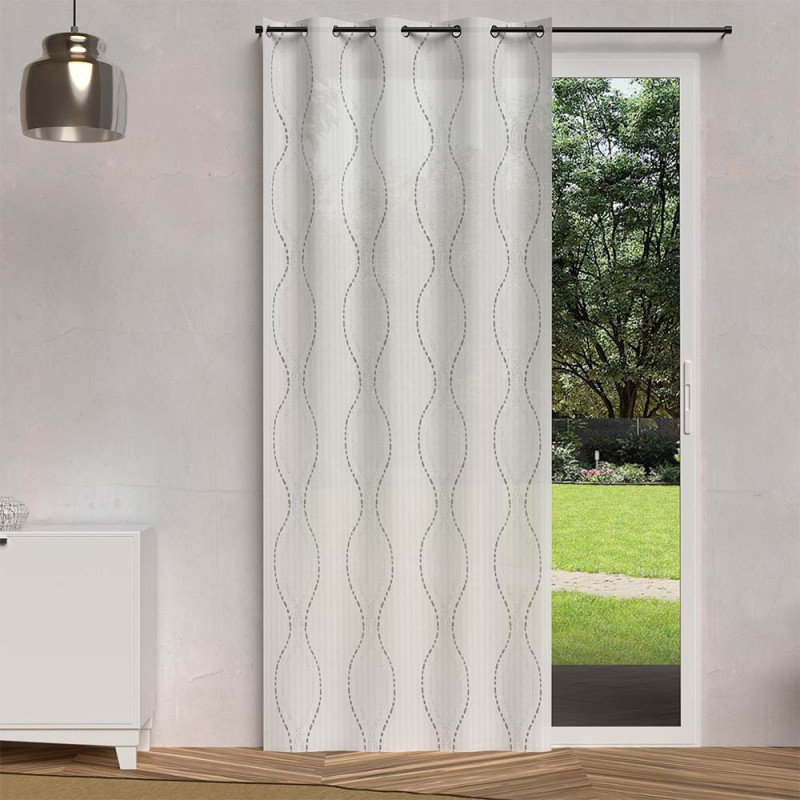 Voilage en étamine de couleur blanc. Son imprimé couleur argent ajoute une petite touche de couleur sur le rideau. Sa dimension s'accommodera avec vos fenêtres. Il tamisera agréablement la lumière dans votre pièce et vous protégera du vis à vis.