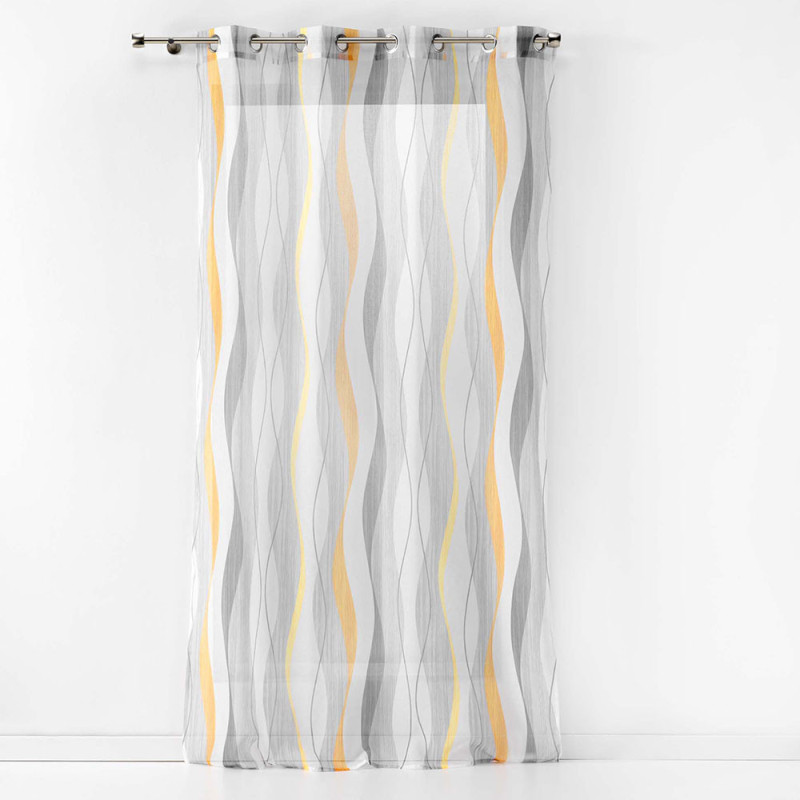 Voilage blanc imprimé rayure jaune et grise 140 x 240 cm