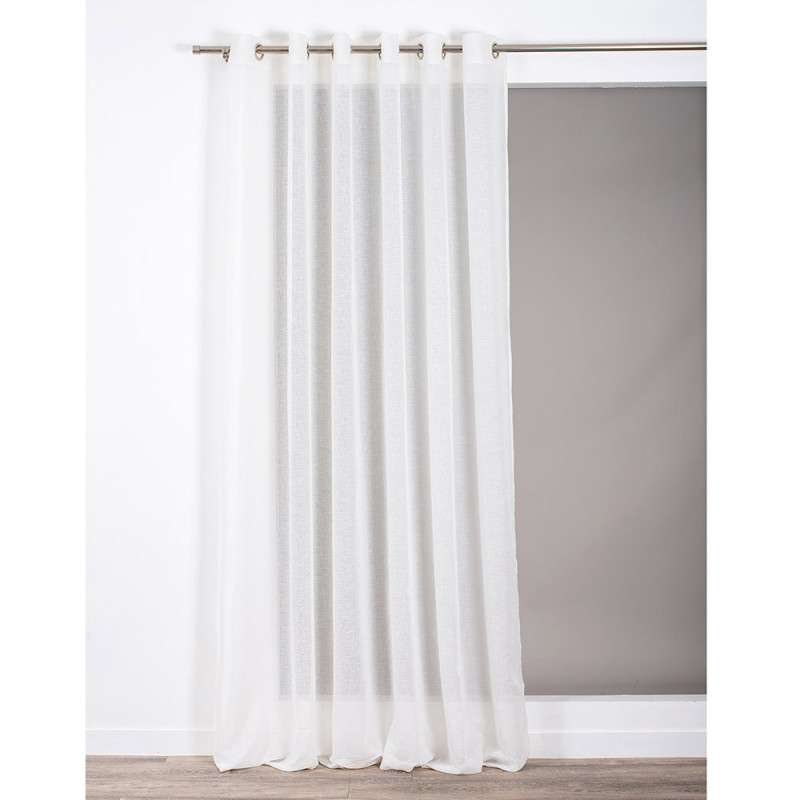 Voilage étamine aspect lin blanc grande hauteur 140 x 300 cm