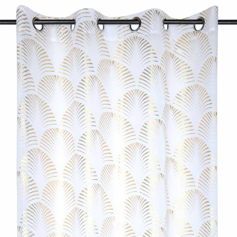 Rideau voilage étamine imprimé feuille or et blanc 140x260 cm