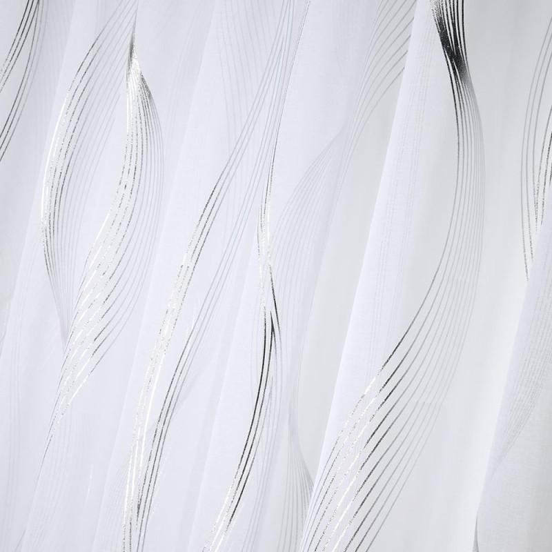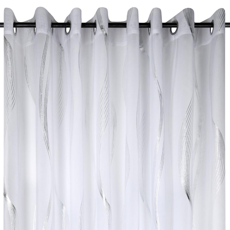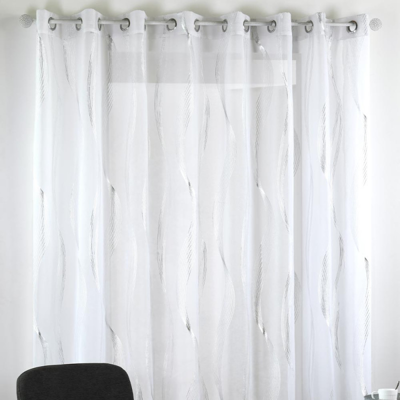 Rideau voilage blanc grande largeur imprimé noir 290x260 cm. Idéal pour les baies vitrées.